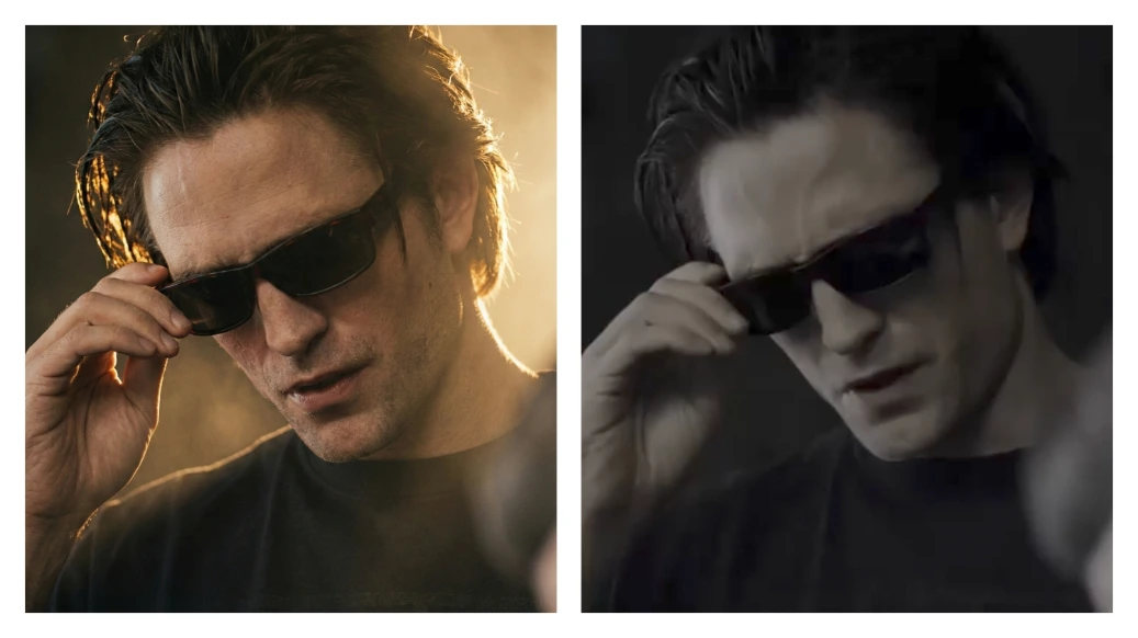 Add very subtle cinematic film grain for a professional movie-still look.Background should remain exactly as it is, only slightly cleaner if noisy - no artificial blur added.