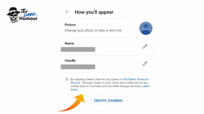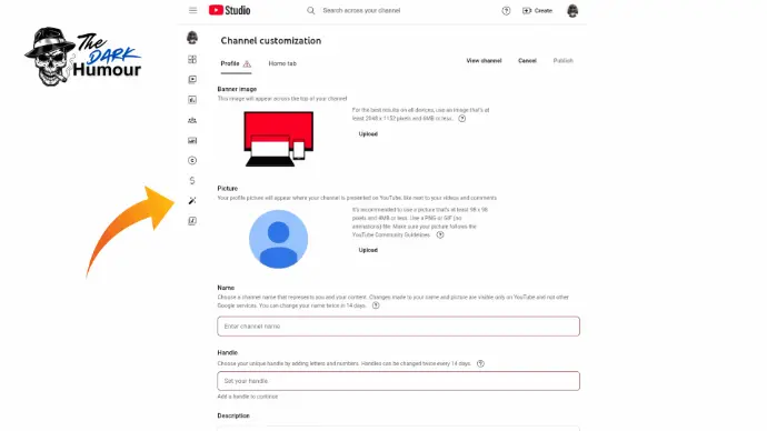3. प्रोफ़ाइल चित्र अपलोड करें और अपने चैनल का नाम लिखें।